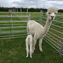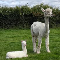 Priscilla is one of our first alpacas, born on 1st May 2019. She is pictured here with her 4th cria, Eliza Doolittle, who was born on 3rd June 2024. Eliza-Doolittle is a true black, exactly like her mother, and represents the beautiful continuation of Priscilla's legacy in our herd.