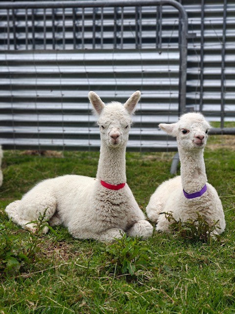 Logan and Alcaraz, our white cria born in summer 2025. Logan arrived on 25 June, followed by Alcaraz on 15 July — two special additions to our herd and a reminder of why we love what we do.